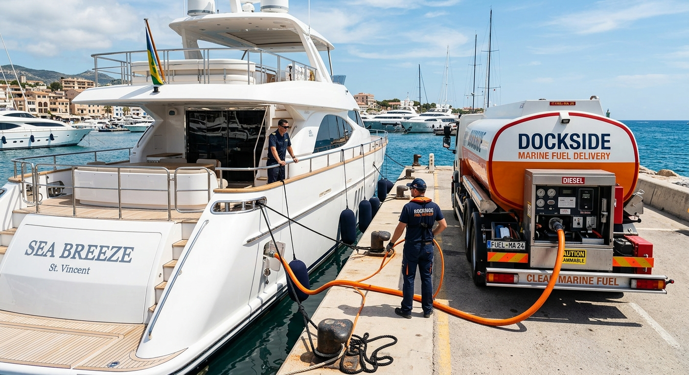 Dockside fuel delivery is a professional service where fuel providers transport marine diesel or gasoline directly to boats at their docking location.